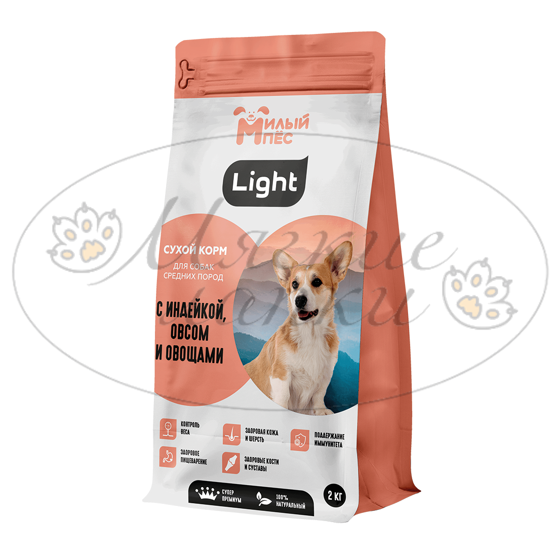 Малоподвижным собакам и собакам, имеющим лишний вес, особенно необходим правильно подобранный рацион. Поэтому линейка корма LIGHT содержит много белков и сниженный уровень углеводов, тем самым обеспечивает поддержание мышечной массы и препятствует отложению жира.