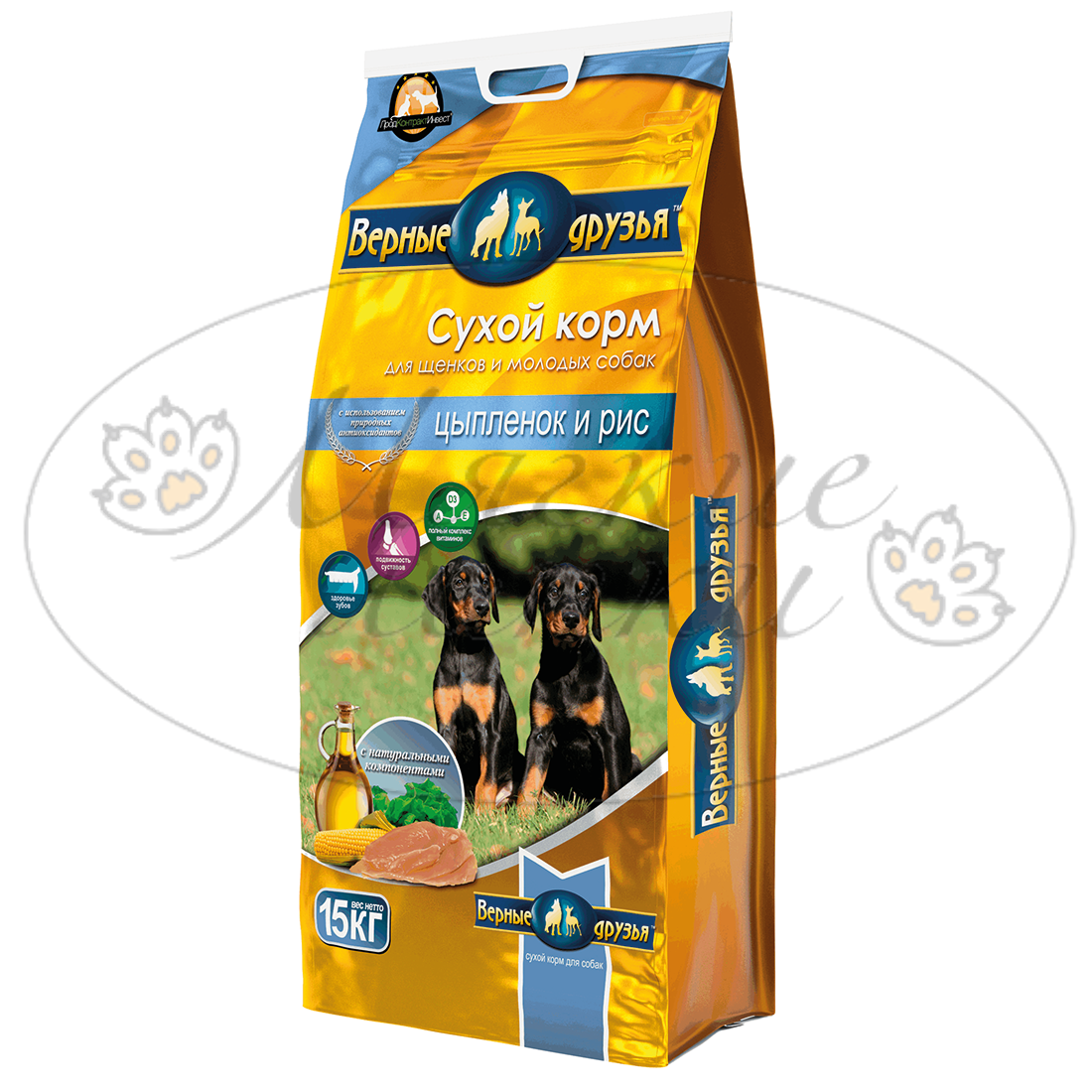Корм «Верные друзья» подходит для щенков всех пород и возрастов, начиная с 3-х недельного возраста.